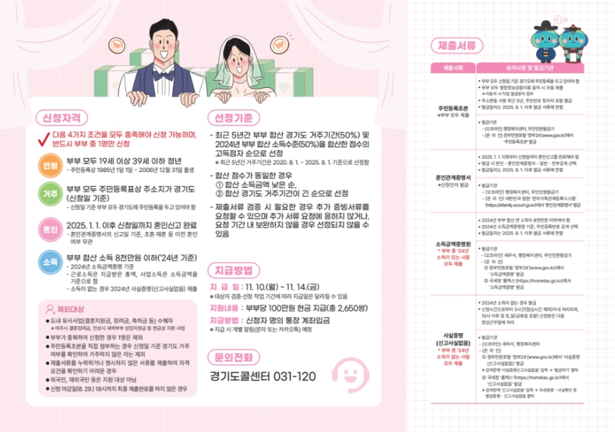 총 2,650쌍에게 현금 지급을 시작합니다. ‘경기청년 결혼지원사업’ 신청 자격부터 기간, 방법까지 깔끔하게