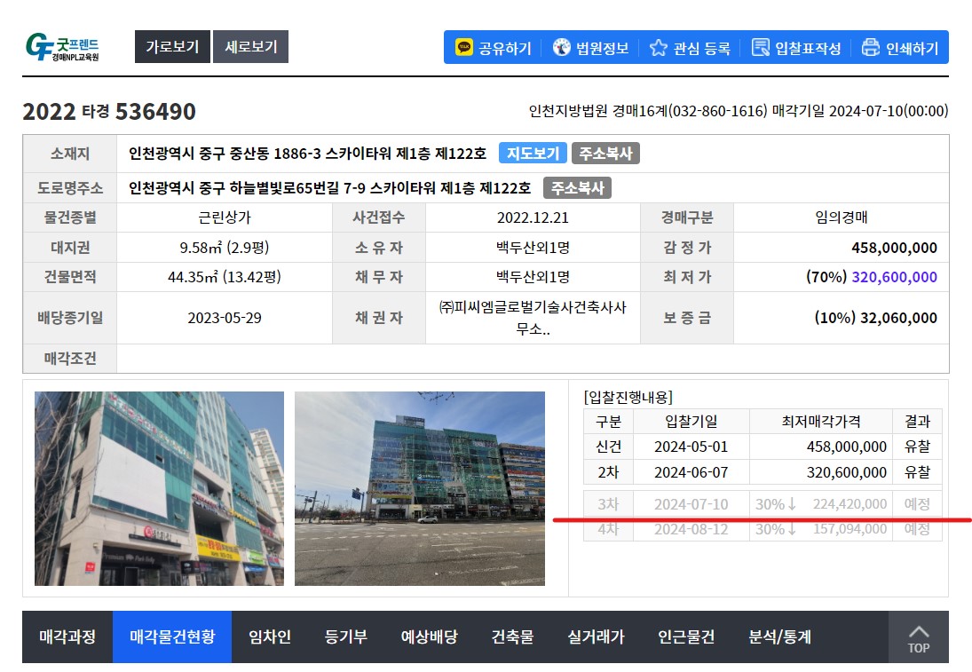 상가 경매 결과