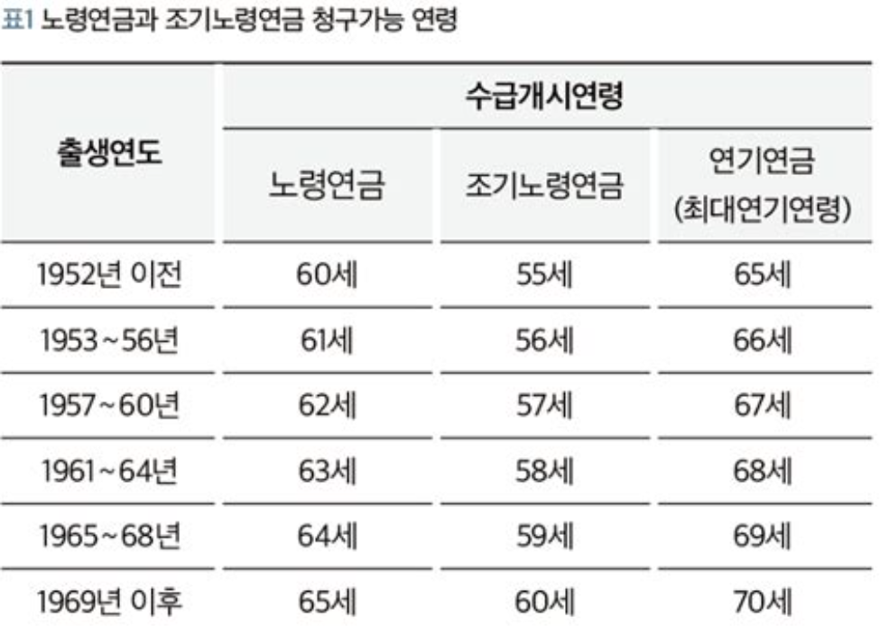 - 연령 조건: 출생 연도에 따라 정해진 연금 수령 연령보다 최대 5년 이전부터 조기 수령이 가능합니다. 예를 들어, 1961년생의 경우 정상 수령 연령이 63세이므로, 58세부터 조기 수령이 가능합니다.