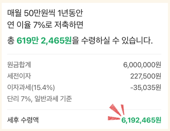 | 세후 이자 | 약 192,465원 |