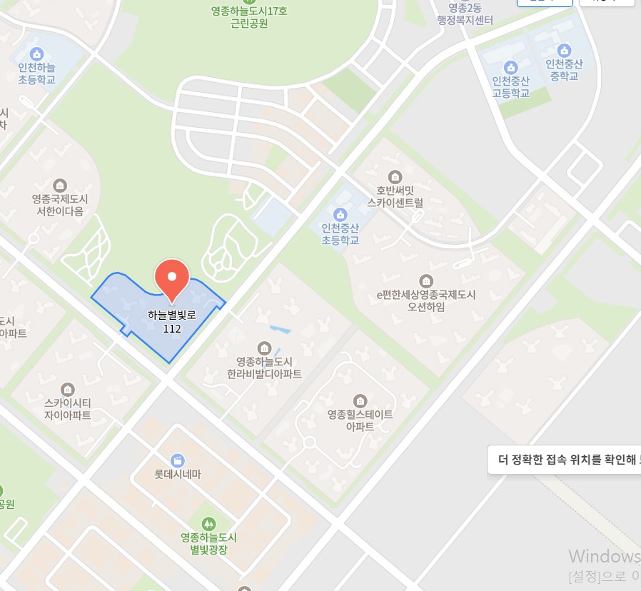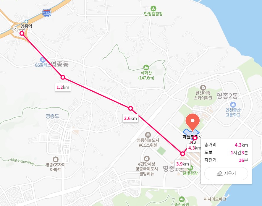 교통은 영종역까지 4.3km 버스로 15분정도 거리이며, 서울 홍대까지 자동차로 45분거리 입니다. 작년 10월부터 영종도 거주민에 한하여 하이패스 통행료가 무료 입니다.