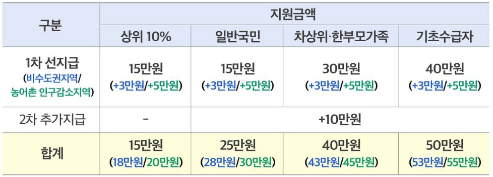 최대 55만 원까지 받을 수 있습니다. 특히 소득과 지역에 따라 추가 지원이 있어 꼭 확인하셔야 해요!