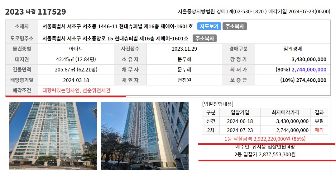 2024.07.19 - [분류 전체보기] - 법원경매물건-서울 서초구 현대슈퍼빌 주상복합 아파트