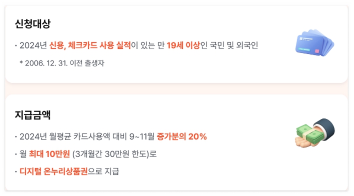 카드 실적 | 2024년 신용/체크카드 이용 실적 있어야 함 |