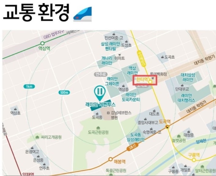 √ 생활환경 : 롯데백화점 강남점, 강남세브란스 병원, 이마트 등