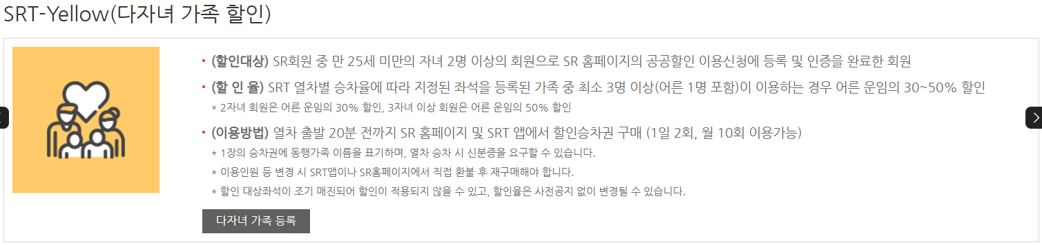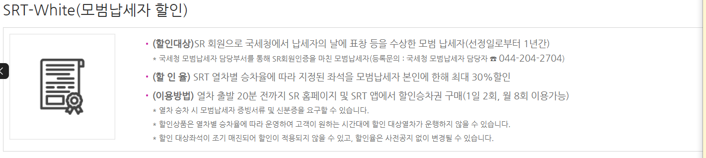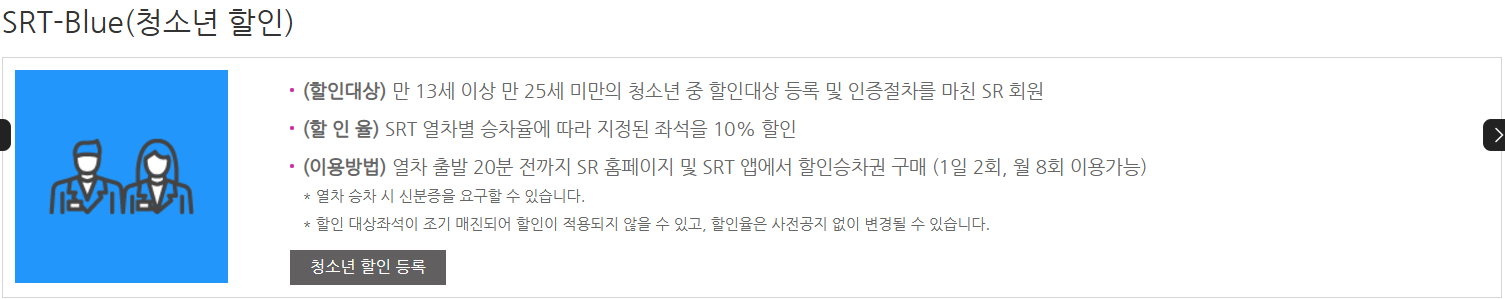 할인 혜택은 SRT 공식 홈페이지에서 확인할 수 있으며, 예매 시 적용할 수 있는 쿠폰도 제공됩니다.