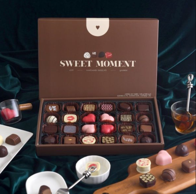 다양한 맛과 디자인의 수제 초콜릿으로 구성된 24구 세트입니다. 정성스럽게 만들어진 초콜릿과 함께 쇼핑백이 제공되어 선물하기에 편리합니다.