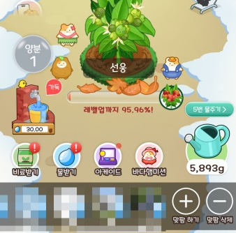 자원 획득 : 출석 체크, 웰컴 기념 혜택, 양분 보너스 등을 통해 물과 비료를 모읍니다.