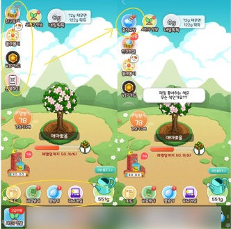 자원 관리 : 작물의 성장을 촉진하기 위해 물과 비료가 필요합니다. 이러한 자원은 출석 보상, 웰컴 기념 혜택, 양분 보너스 등 다양한 방법으로 획득할 수 있습니다.
