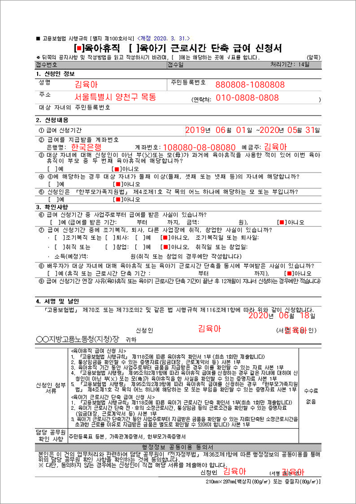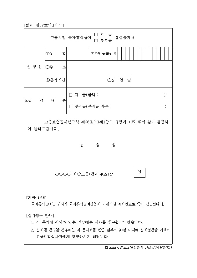 - 육아휴직 기간 동안 사업주로부터 금품을 지급받은 경우, 이를 확인할 수 있는 자료의 사본 1부
