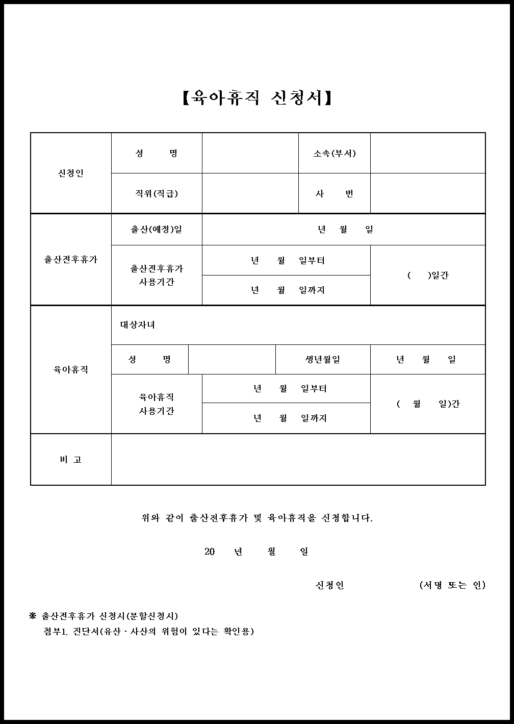 - 육아휴직 확인서 (최초 1회 제출, 사업주 작성)