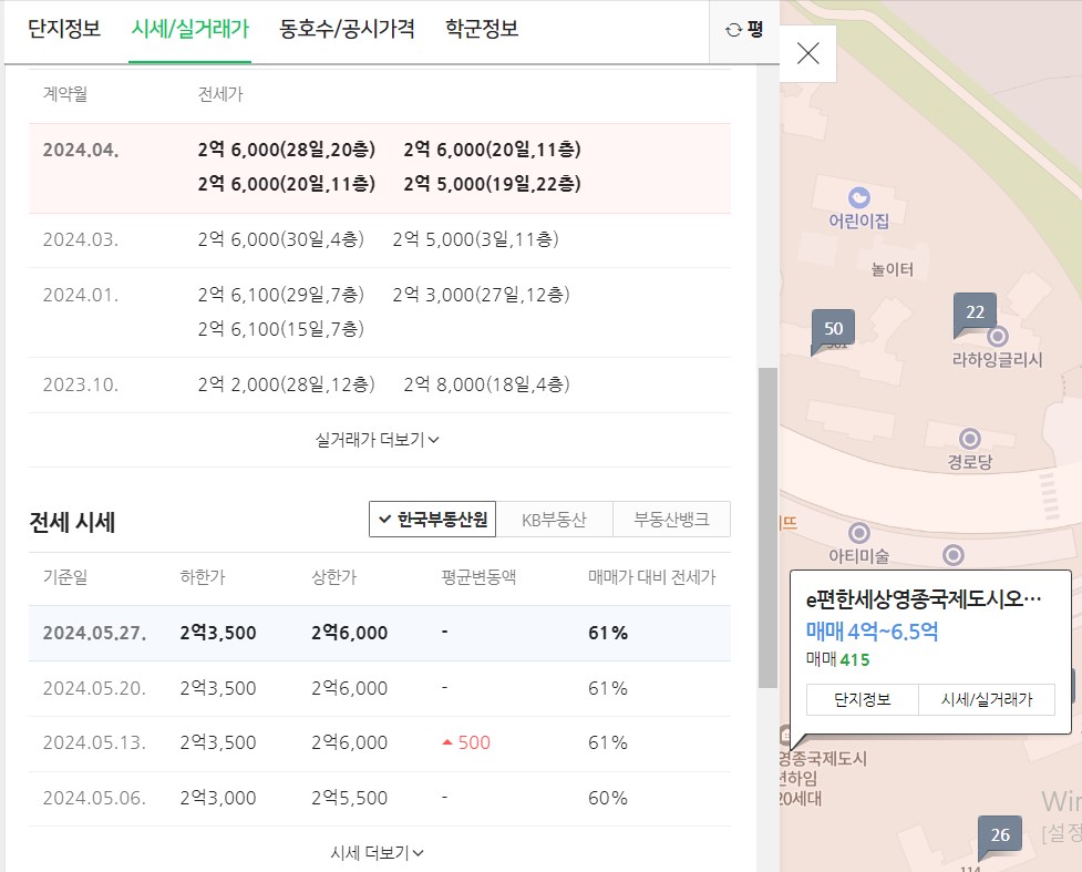 같은 단지 같은 평수 비슷한 층을 기준으로 알아봤을때 최근 실거래가가 4층 4억정도이고 1층은 3억 9천만원에 거래 되었습니다. 전세의 경우도 층별 차이는 조금 있으나 평균 2억 5천만원에 거래되고 있습니다.