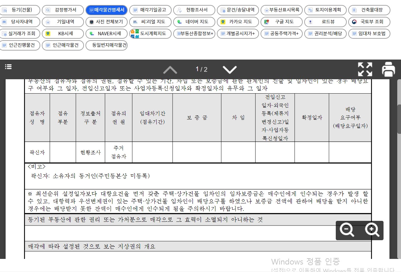 매각물건명세서나 임차인 현황 및 등기부 현황을 살펴봐도 아무 하자 없는 물건 입니다.