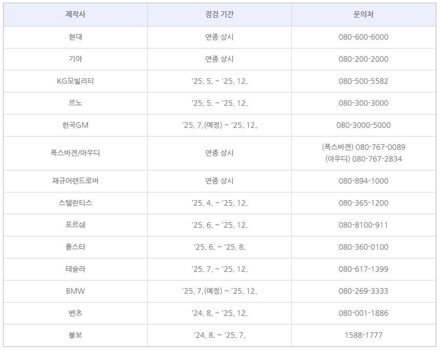 - 제작사별 무상 안전점검 일정 한눈에 보기