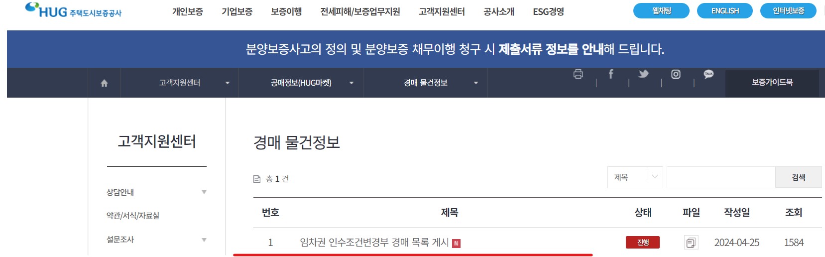 전세보증보험을 가입한 임차인이 전세 사기등으로 집주인에게 보증금을 못 받게 되면, 주택도시보증공사(HUG)에서는 집주인을 대신하여 보증금을 내어 줍니다. 그리고 채권회수를 위해 경매로 넘기게 됩니다. 주택도시보증공사에서도 보증금을 100% 받을 수 있을만한 것들은 경매로 진행하되, 계속 유찰만되는 물건의 경우 중간에 대항력을 포하는 경우가 있습니다.