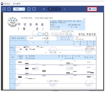 - 발급 종류 선택 : 주민등록등본 또는 초본 중 원하는 서류를 선택합니다.