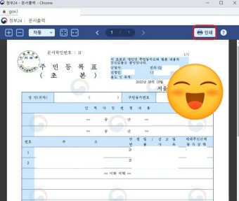 - 주민등록 아이콘 클릭 : 메인 화면에서 '주민등록' 아이콘을 클릭합니다.