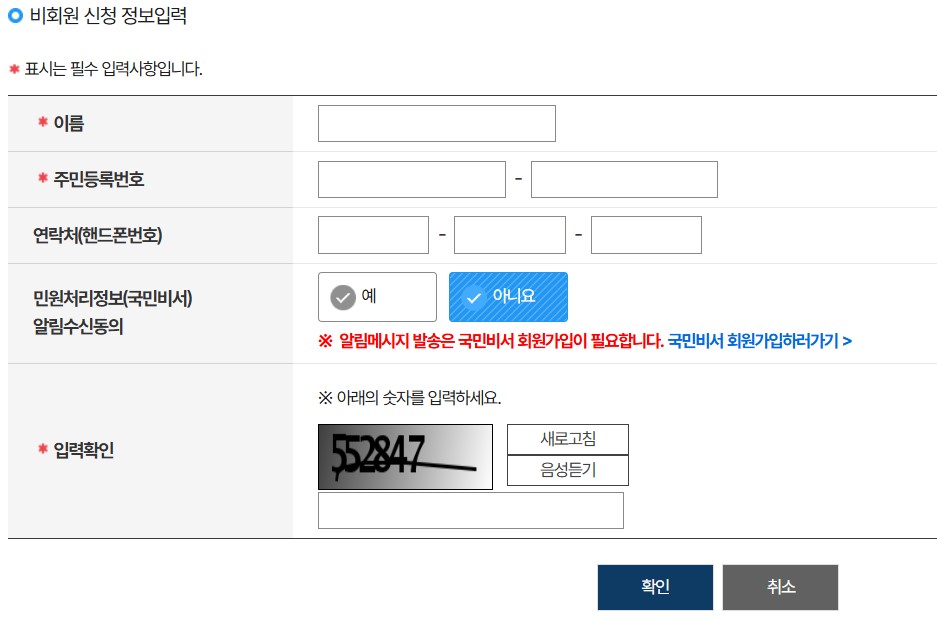 - 대리인 신청 : 대리인이 신청할 경우, 위임장과 대리인의 신분증이 필요합니다.