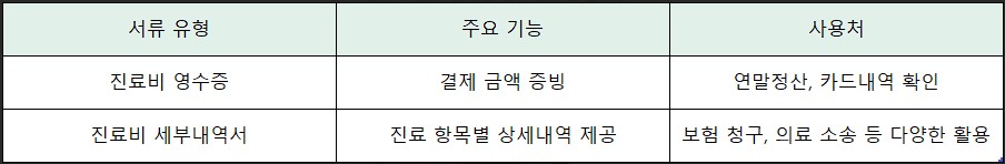 - 실비보험이나 연말정산 시 공식 증빙자료로 활용되며, 환불 요청 시에도 필요합니다.