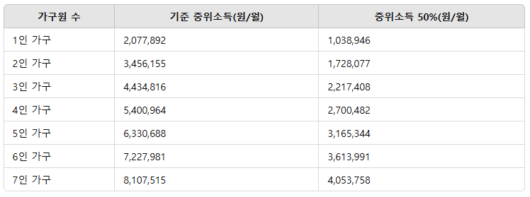 2025년 기준 중위소득 및 차상위계층 소득 기준