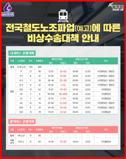 광주시 기준 총 10개 노선, 109대 운행 → 파업 시 499대 확대 투입