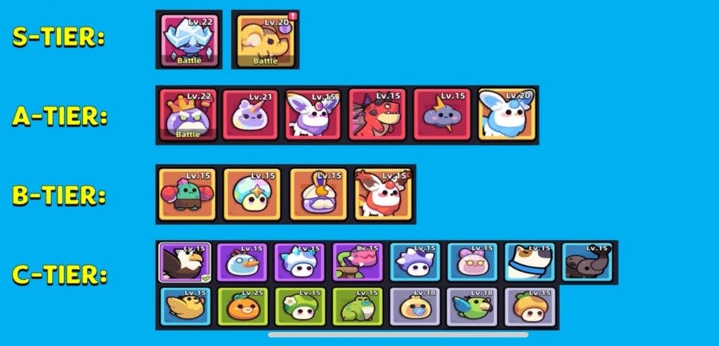 - S-Tier : 이 등급의 캐릭터들은 게임에서 가장 강력한 성능을 자랑합니다. 예를 들어, 레벨 22의 캐릭터와 레벨 20의 캐릭터가 포함되어 있습니다.