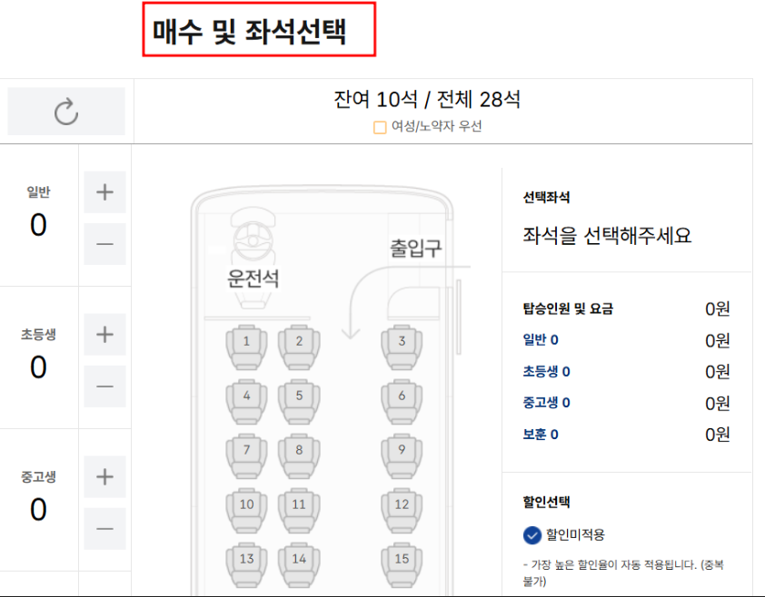 - 좌석 선택: 예약 가능한 좌석 중 원하는 좌석을 선택합니다. 좌석 배치는 버스마다 다를 수 있으므로, 선호하는 위치를 고려하여 선택합니다.