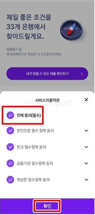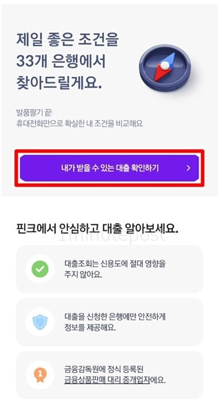 5. 핀크 대출한도 조회 후 대출 신청 방법