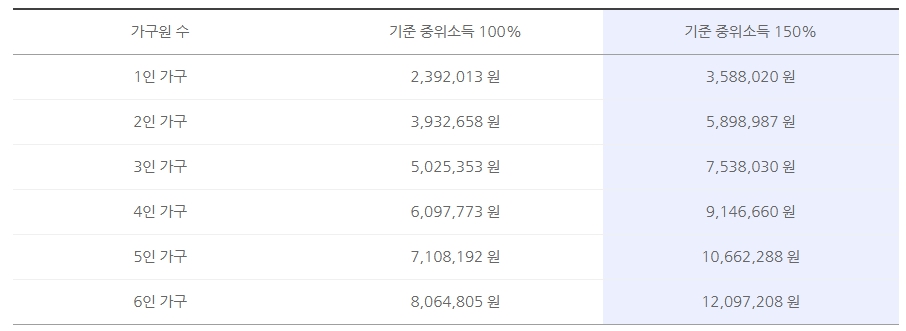 2. 가족돌봄수당 신청 대상 (중위소득 150%)