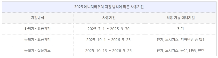 2. 2025년 에너지바우처 지원 금액 / 사용 기간
